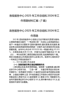 各级服务中心2025年工作总结和2026年工作思路材料汇编(7篇).docx