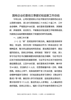 国有企业纪委前三季度纪检监察工作总结.docx