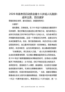 2026年高考百日动员会暨十八岁成人礼致辞:成年立责,百日逐梦.doc