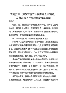 专题党课:深学笃行二十届四中全会精神,奋力谱写X中高质量发展新篇章.docx