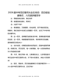 2026届中考百日誓师大会主持词:百日砺剑磨锋芒,六月逐梦耀芳华.docx