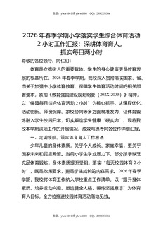 2026年春季学期小学落实学生综合体育活动2小时工作汇报:深耕体育育人,抓实每日两小时.docx