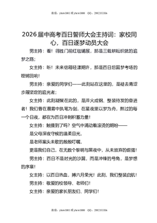 2026届中高考百日誓师大会主持词:家校同心,百日逐梦动员大会.docx