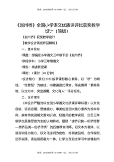 《赵州桥》全国小学语文优质课评比获奖教学设计(简版).docx