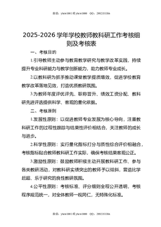 2025-2026学年学校教师教科研工作考核细则及考核表.docx