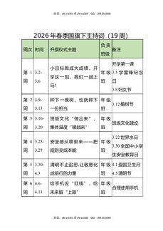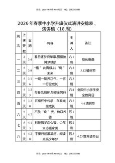 2026年春季中小学升旗仪式演讲安排表,演讲稿(18周).docx