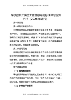 学校教职工岗位工作量核定与标准课时折算办法(2026年试行).doc