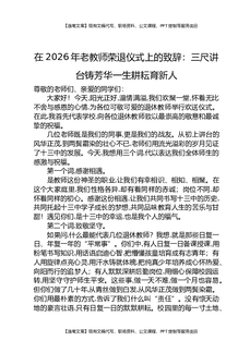 在2026年老教师荣退仪式上的致辞:三尺讲台铸芳华一生耕耘育新人.docx