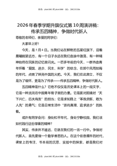 2026年春季学期升旗仪式第10周演讲稿:传承五四精神,争做时代新人.doc