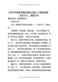 2026年春季学期升旗仪式第11周演讲稿:防灾于心,避险于行.doc