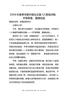 2026年春季学期升旗仪式第12周演讲稿:平等尊重,爱满校园.doc