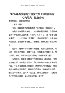 2026年春季学期升旗仪式第13周演讲稿:心向阳光,健康成长.doc