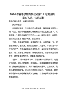 2026年春季学期升旗仪式第14周演讲稿:童心飞扬,快乐成长.doc