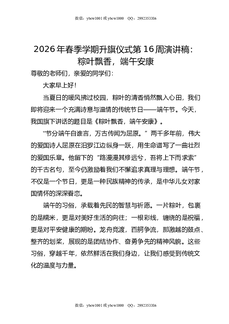 2026年春季学期升旗仪式第16周演讲稿:粽叶飘香,端午安康.doc
