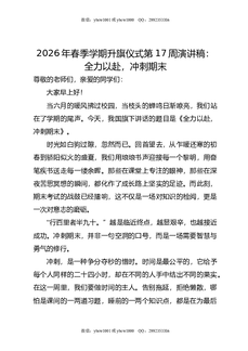 2026年春季学期升旗仪式第17周演讲稿:全力以赴,冲刺期末.doc