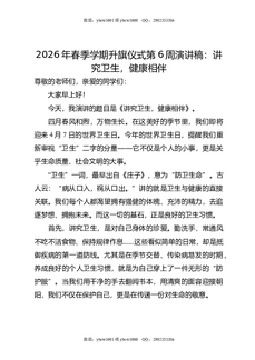 2026年春季学期升旗仪式第6周演讲稿:讲究卫生,健康相伴.doc