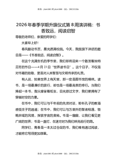 2026年春季学期升旗仪式第8周演讲稿:书香致远,阅读启智.doc