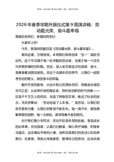 2026年春季学期升旗仪式第9周演讲稿:劳动最光荣,奋斗最幸福.doc