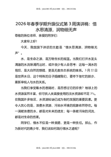 2026年春季学期升旗仪式第3周演讲稿:惜水思清源,润物细无声.doc