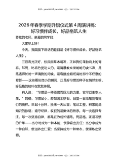 2026年春季学期升旗仪式第4周演讲稿:好习惯伴成长,好品格筑人生.doc