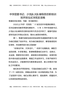 中学团委书记、少先队大队辅导员任职培训班开班仪式学员发言稿.docx