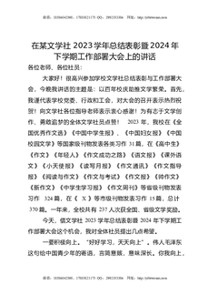 在某文学社2023学年总结表彰暨2024年下学期工作部署大会上的讲话.docx