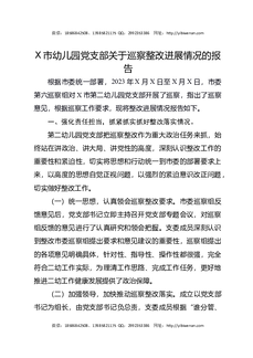 X市幼儿园党支部关于巡察整改进展情况的报告.docx