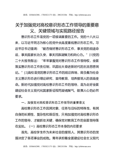 关于加强党对高校意识形态工作领导的重要意义、关键领域与实现路径报告.docx