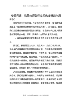 专题党课:党员教师怎样发挥先锋模范作用.docx