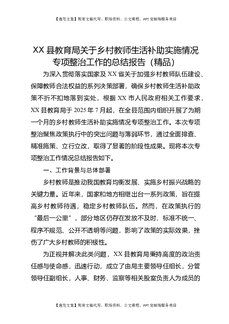 XX县教育局关于乡村教师生活补助实施情况专项整治工作的总结报告(精品).docx