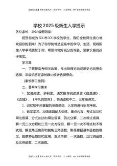 学校2025级高一新生入学提示.docx