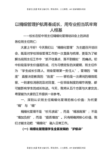 以精细管理护航青春成长,用专业担当筑牢育人根基——校长在初中班主任精细化管理培训会上的讲话.docx