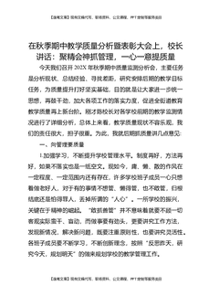 在秋季期中教学质量分析暨表彰大会上,校长讲话:聚精会神抓管理,一心一意提质量.docx