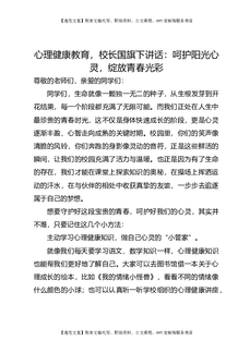 心理健康教育,校长国旗下讲话:呵护阳光心灵,绽放青春光彩.docx