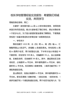 校长学校管理经验交流报告:希望我们坦诚交流,共同学习.docx