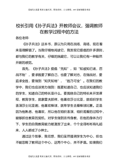 校长引用《孙子兵法》开教师会议,强调教师在教学过程中的方法.docx