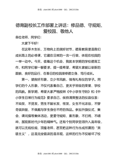 德育副校长工作部署上讲话:修品德,守规矩,爱校园,敬他人.docx