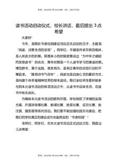 读书活动启动仪式,校长讲话,最后提出3点希望.docx