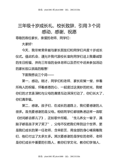 三年级十岁成长礼,校长致辞,引用3个词感动,感谢,祝愿.docx