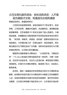 三月文明礼貌月活动,校长动员讲话:人不是因为美丽才文明,而是因为文明而美丽.docx