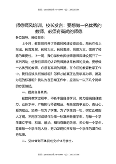 师德师风培训,校长发言:要想做一名优秀的教师,必须有高尚的师德.docx