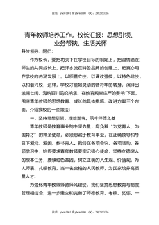 青年教师培养工作,校长汇报:思想引领,业务帮扶,生活关怀.docx