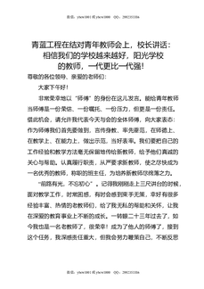 青蓝工程在结对青年教师会上,校长讲话:相信我们的学校越来越好,阳光学校的教师,一代更比一代强!.docx