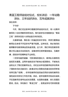 青蓝工程师徒结对仪式,校长讲话:一年站稳讲台,三年站好讲台,五年成就讲台.docx