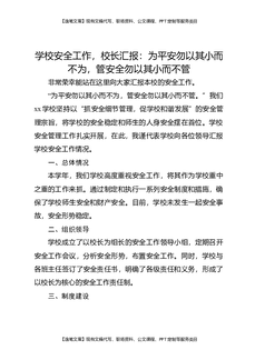 学校安全工作,校长汇报:为平安勿以其小而不为,管安全勿以其小而不管.docx