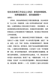 校长在体育工作会议上讲话:参加体育锻炼,培养健身意识,崇尚健康第一.docx