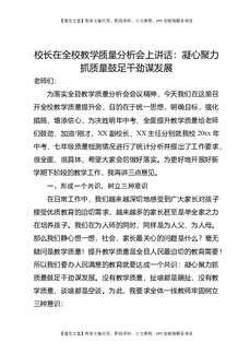 校长在全校教学质量分析会上讲话:凝心聚力抓质量鼓足干劲谋发展.docx