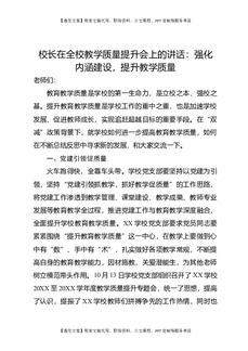校长在全校教学质量提升会上的讲话:强化内涵建设,提升教学质量.docx