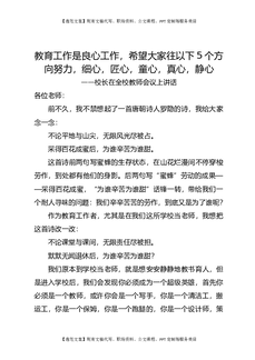 校长在全校教师会议上讲话:教育工作是良心工作,希望大家往以下5个方向努力,细心,匠心,童心,真心,静心.docx
