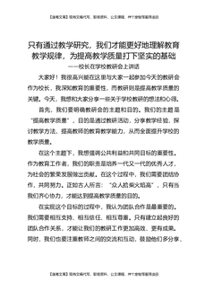 校长在学校教研会上讲话:只有通过教学研究,我们才能更好地理解教育教学规律,为提高教学质量打下坚实的基础.docx